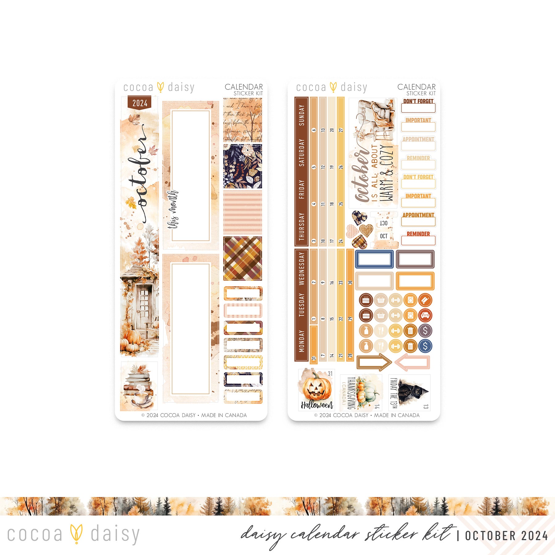 Cozy Season Calendar Stickers for Daisy Weeks October 2024 – Cocoa